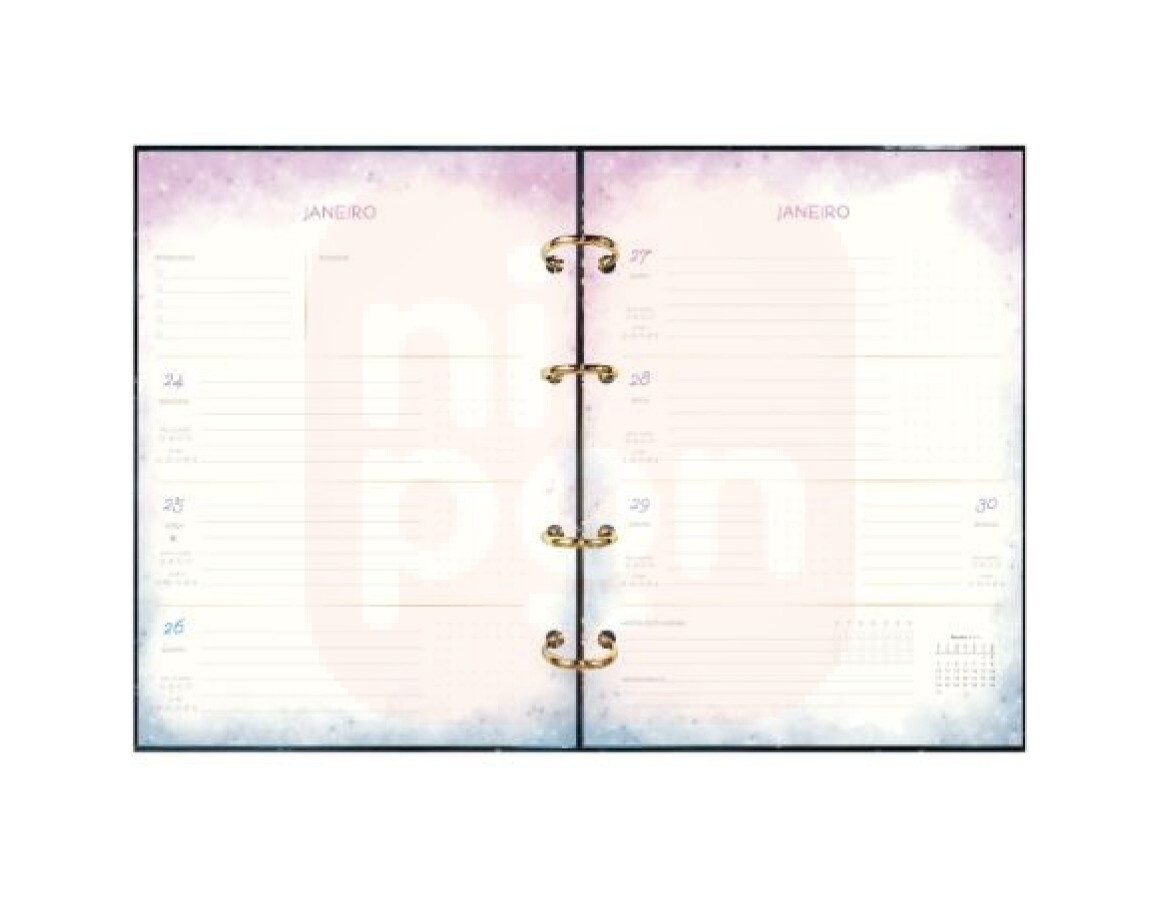 O Planner Argolado 17,7 x 24 cm Magic 90 G 2022 pode ser usado para organizar os compromissos do dia a dia em casa, no trabalho e na escola. Com formato compacto, leve e bastante funcional, tem capa dura com detalhe metalizado, folha de adesivos, 12 divisórias e bolsa plástica. O miolo deste produto conta com 88 folhas em papel creme, gramatura 90 g/m², com visões anual, mensal e semanal, além de páginas para anotações.