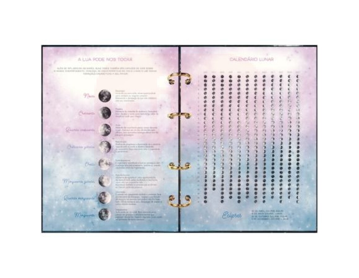 Calendário lunar: mostra as fases da lua em cada dia do ano.