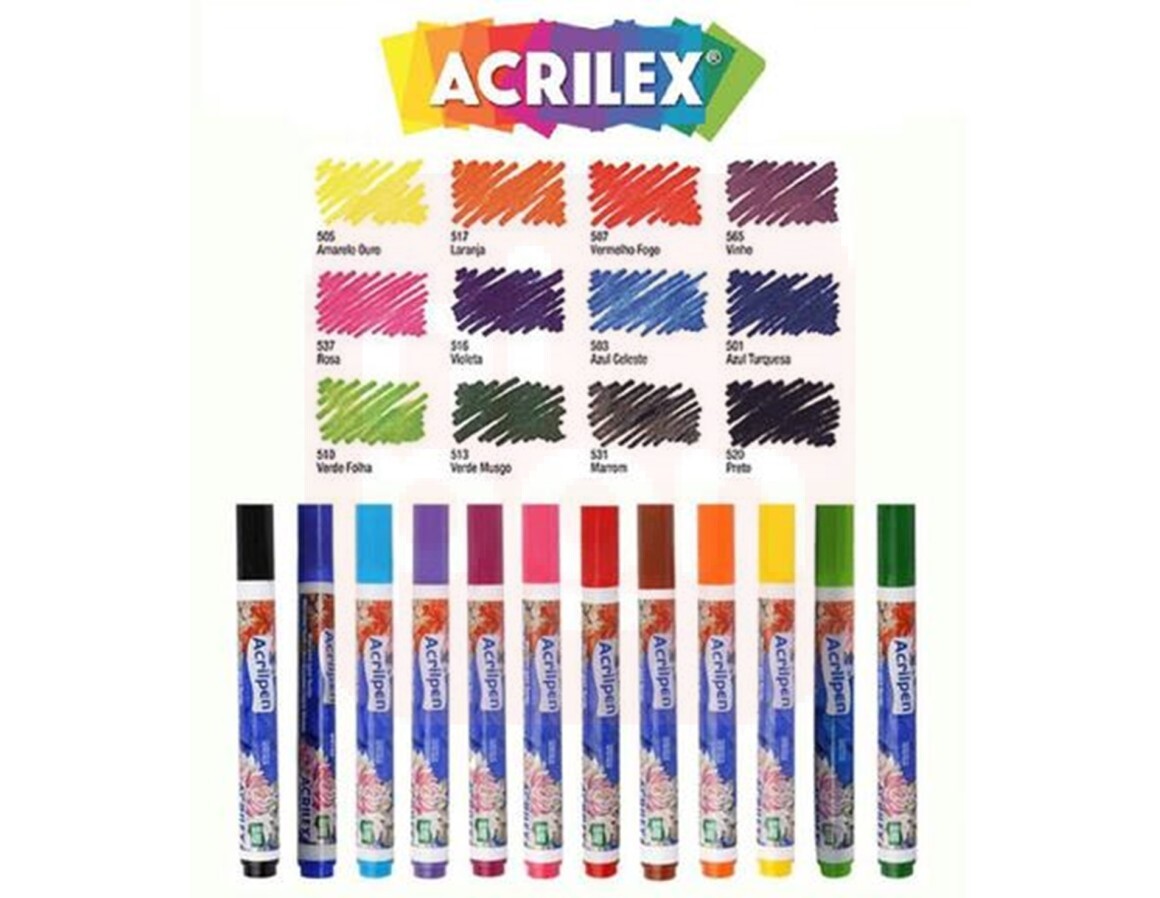 Ideal para customizações, artesanato, trabalhos escolares e projetos de moda, a caneta Acrilex oferece secagem rápida, excelente fixação e alta durabilidade após a aplicação e fixação com ferro de passar.