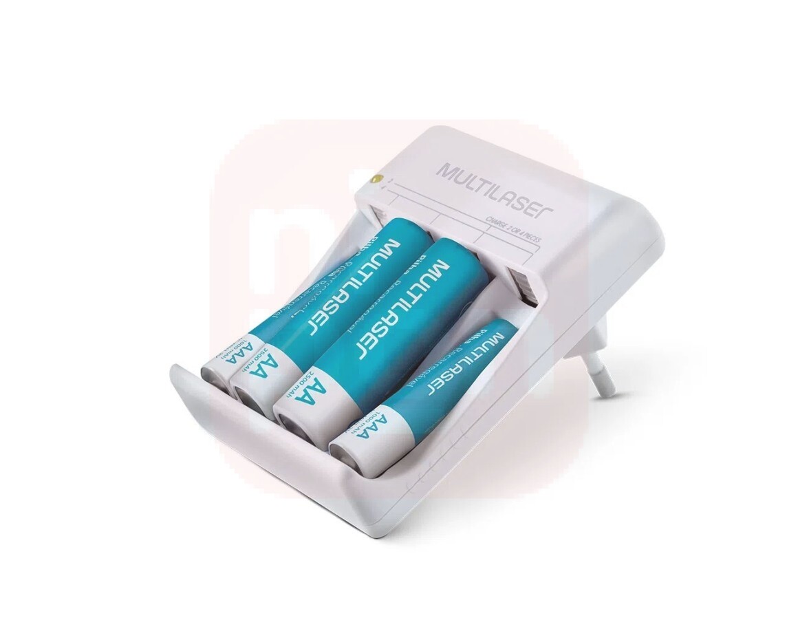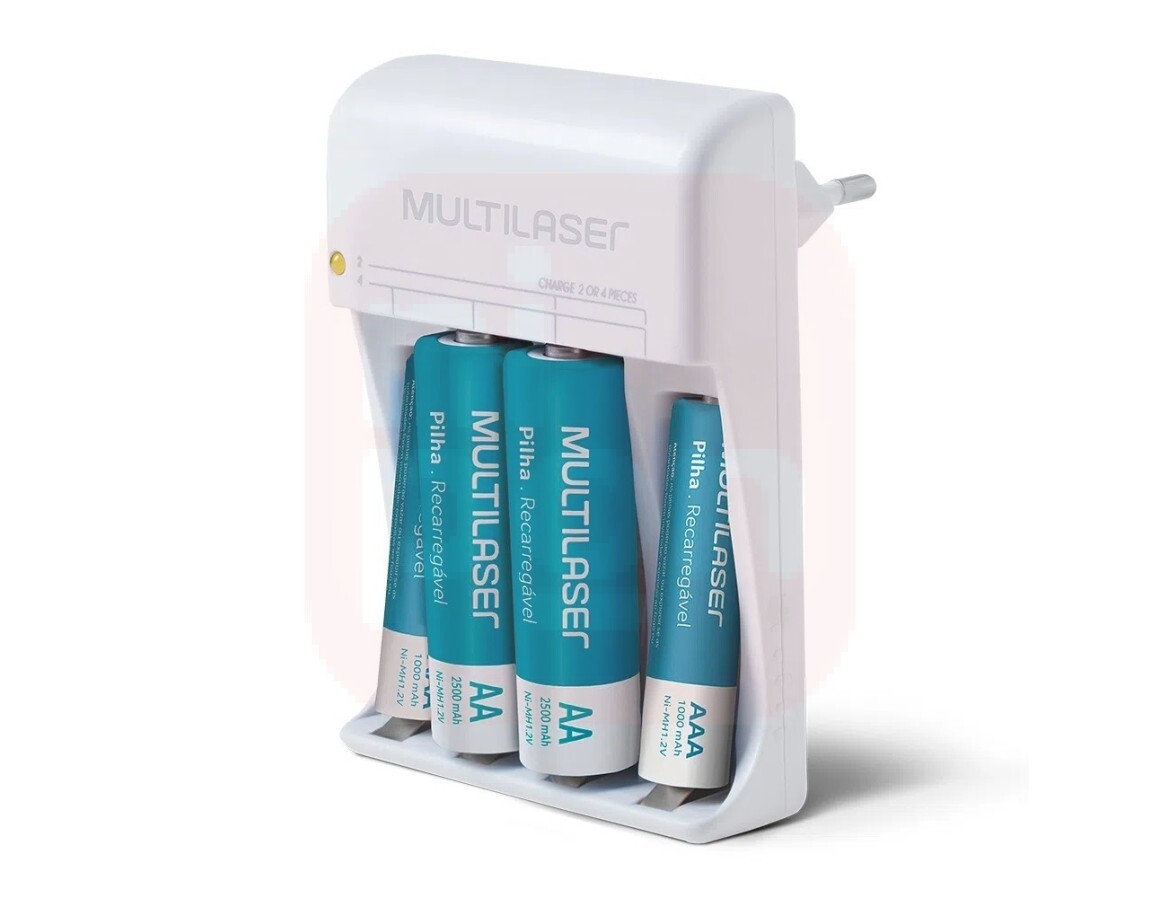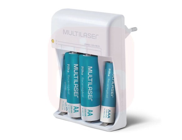- Carregador De Pilhas Multilaser AA/AAA + 2 Pilhas AA 2500Mah + 2 Pilhas AAA 1000Mah - CB045