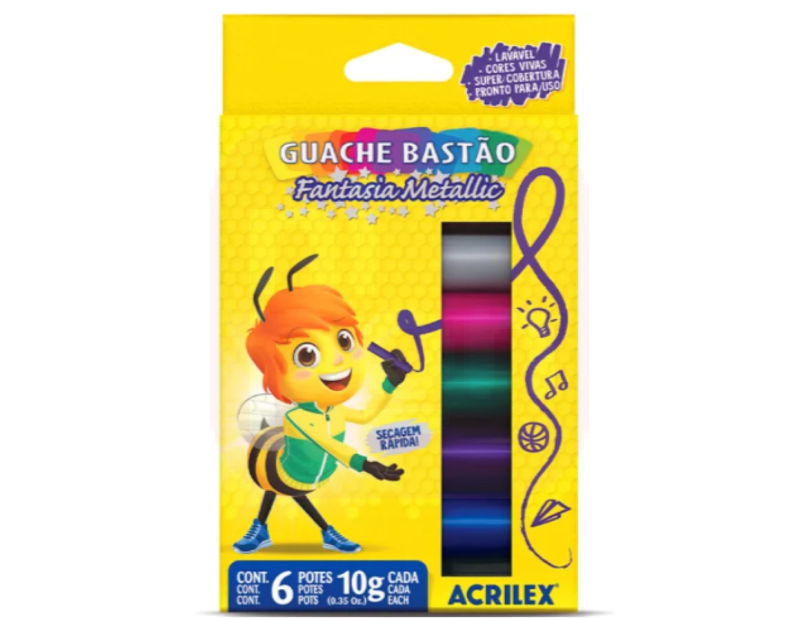 Tinta Guache Bastão Fantasia Metallic 6 Cores - Acrilex