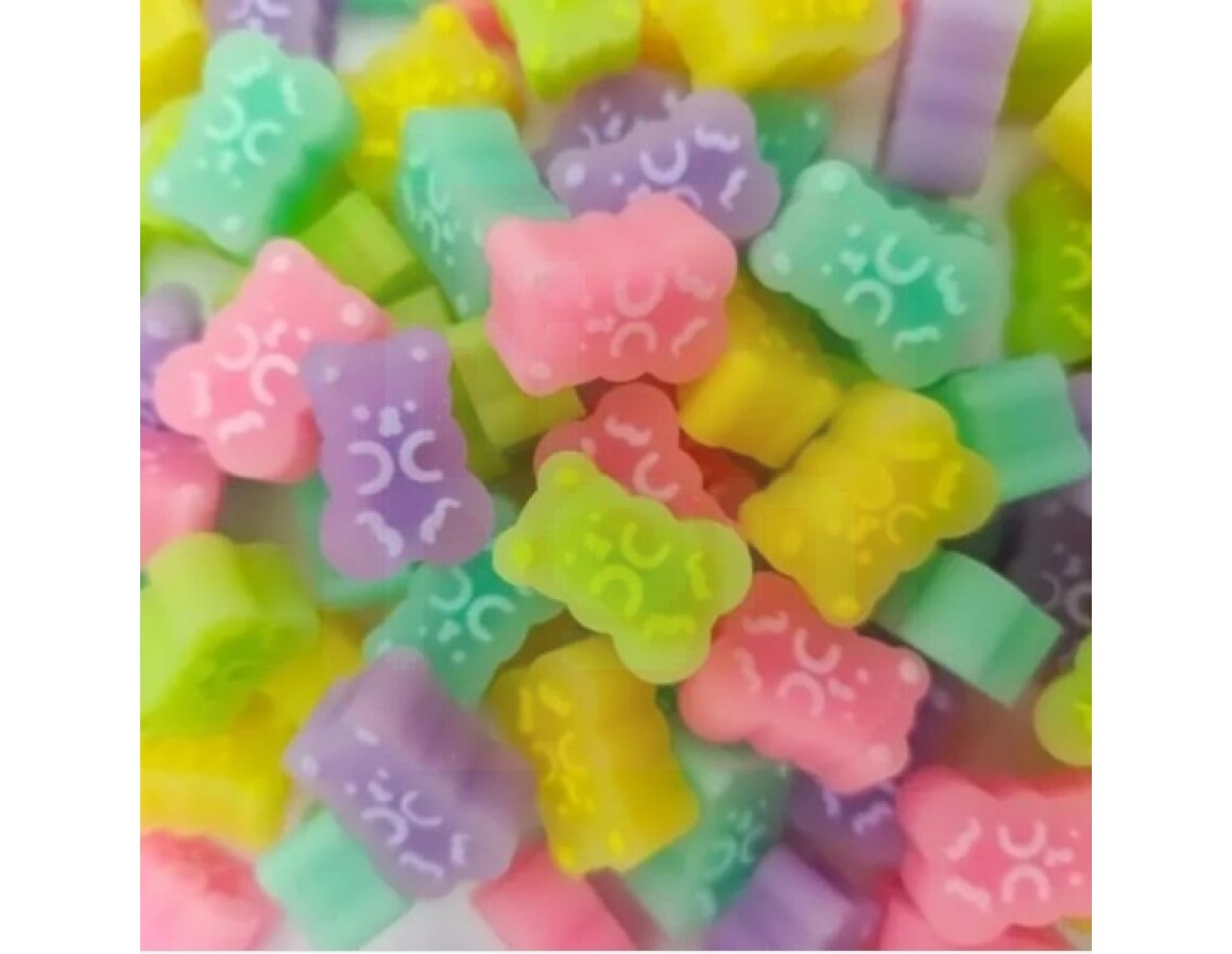 - Kit conta com 5 mini borrachas no formato de ursinhos, sendo elas das seguintes cores: amarelo, azul, lilás, rosa e verde;
