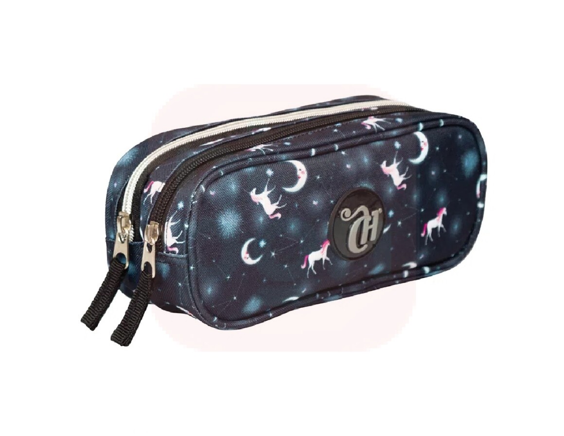 Possui fechamento em zíper e dois compartimentos, ideal para você manter seus lápis e canetas sempre organizados!