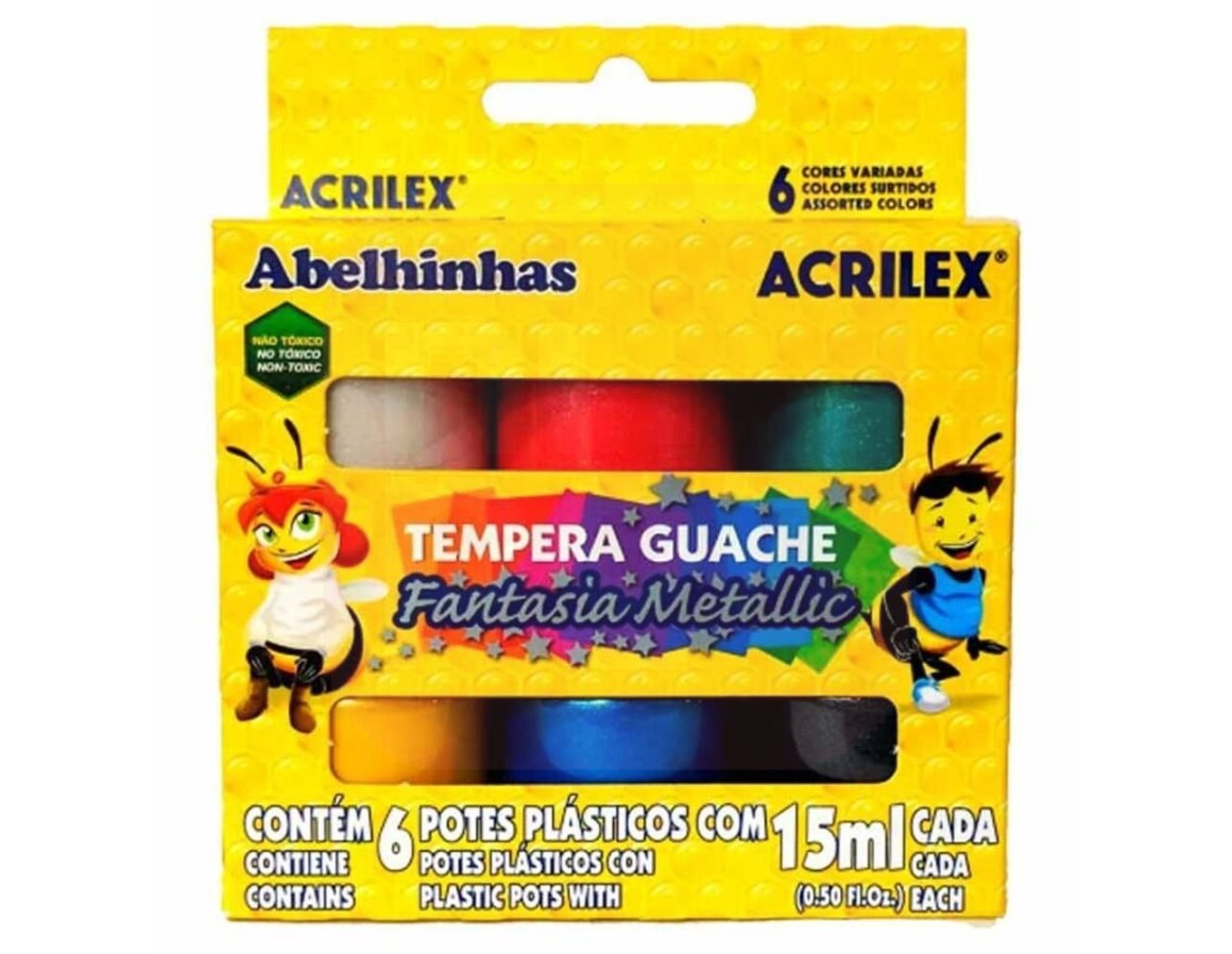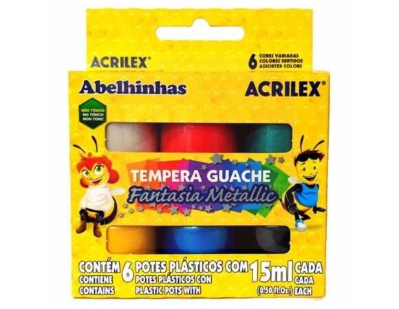 Tinta Guache 6 Cores 15ml Metalic - Acrilex